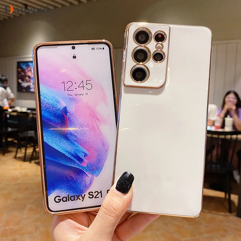 Square Plating Silicone Phone Case on For Samsung Galaxy S21 S20 S22 S23 Cover